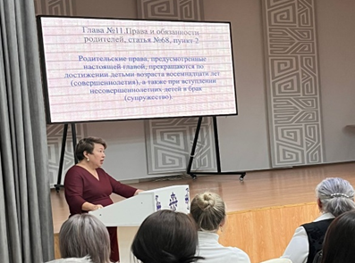 В рамках организации деятельности с родительской общественностью, 19 сентября 2025 года, в актовом зале гимназии было проведено общешкольное родительское собрание с представителями родительских комитетов 52-х классов. Директор гимназии Макежанова Роза Ашимбековна поздравила родителей с началом учебного года и ознакомила родителей с информацией: ремонт за летний период- модернизации кабинетов ,столовой, затраченные средства. Общешкольное собрание началось с показа лучших видеороликов, приуроченных к Дню Семьи. Заместитель директора по ВР Болатбаева М.Л., провела занятие по правовому всеобучу по теме «Кодекс РК «О браке(супружестве) и семье. Права и обязанности родителей-глава№11; Права ребенка-глава№10, статья №60,61,62,66,67,70», ознакомила с вопросами совещания «Профилактика личной безопасности» с участием руководителя УО города Алматы Сайфеденова С.Т., представителя прокуратуры Ысқақ Д.Ж., старшего менеджера Тele2 Ибрагимова Р.А..Также на родительском собрании выступила школьный психолог Фарзалиева К.Т., которая ознакомила родителей с обновленной программой ДОСБОЛLIKE, рассказала участникам собрания о значимости профилактики аутодеструктивного поведения. Болатбаева М.Л. также ознакомила родителей с обновленной программой ЦППР и выразила благодарность родителю-Кунанбаевой С.А.. Атмосфера собрания была насыщенной, плодотворной и позитивной. С целью воспитания уважения к труду, родители предложили организовать с участием учащихся 4-11 классов еженедельную уборку в школе.