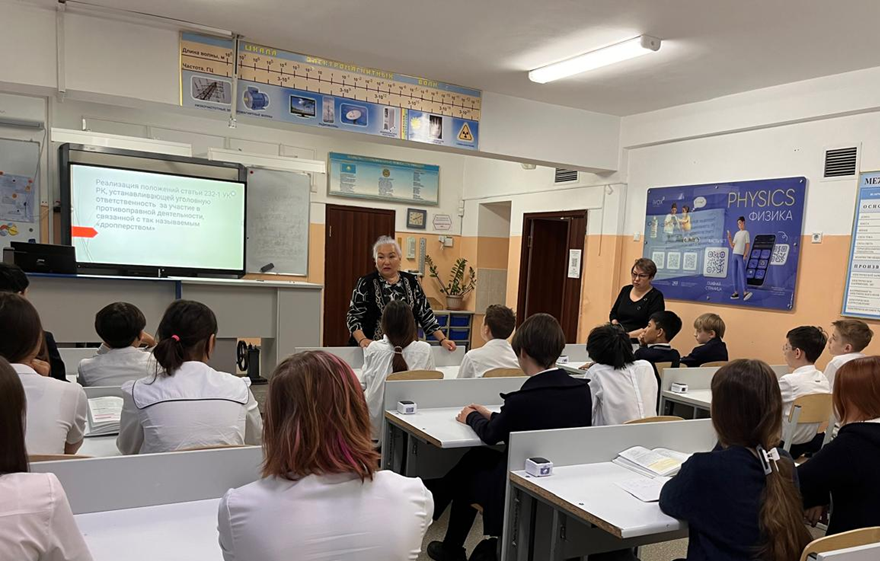 В рамках профилактики правонарушений, с учетом роста числа преступлений, совершаемых с использованием платёжных инструментов, вовлечённости молодёжи в преступные схемы 23 сентября 2025 года директор КГУ «Гимназия№46» Макежанова Р.А., заместители директора по ВР, классные руководители 23 сентября провели информационно-разъяснительную работу с учащимися гимназии. Первый рук-ль информировала об ответственность за дропперство (передача и использование банковских карт третьими лицами, осуществление транзакций по указанию иных лиц) и призвала учащихся соблюдать правила безопасной жизнедеятельности.