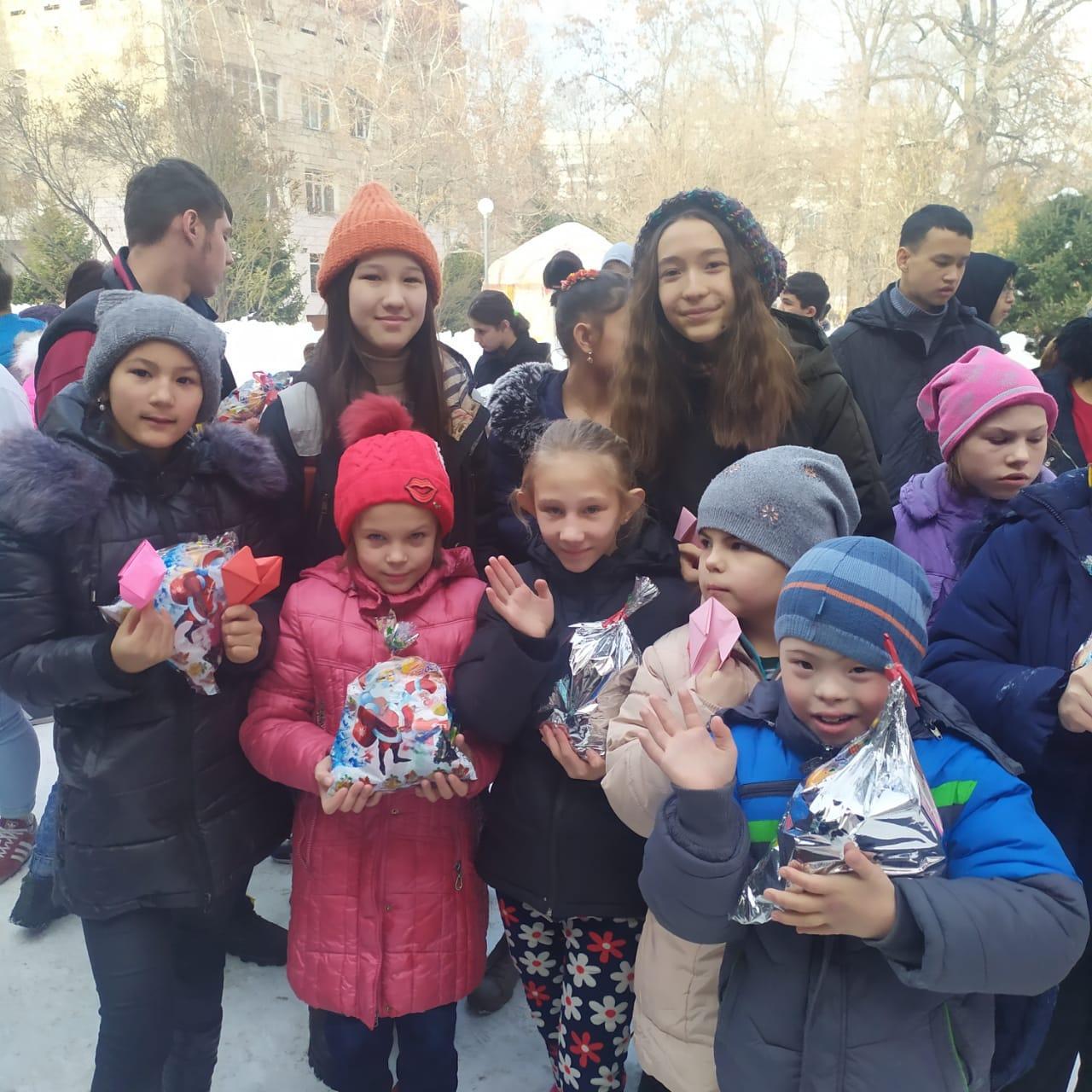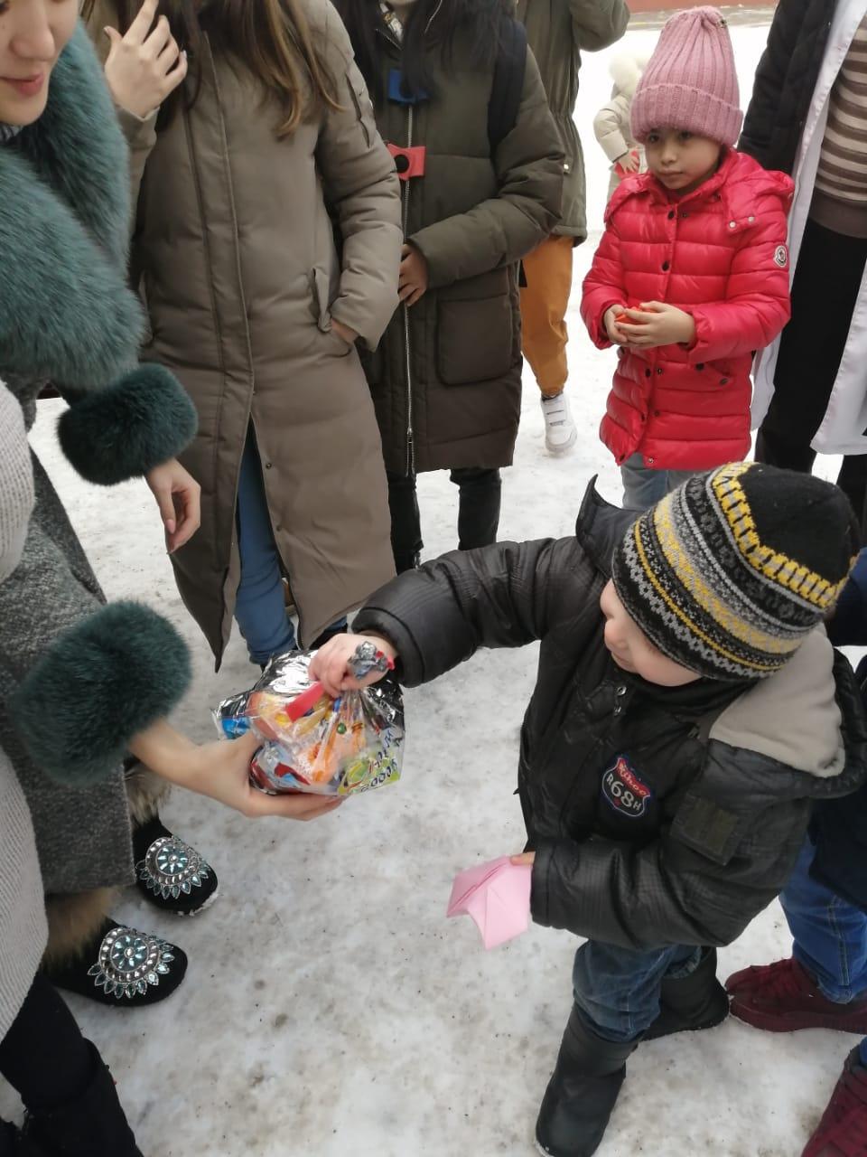 Доброта и милосердие были актуальны во все времена, родители, учителя и ученики стараются дарить тепло своих сердец всем В предверии новогодних праздников учащиеся 8,5 классов, родители, классный руководитель Лебедева Е.В. посетили детский дом «Жанұя» . Ученики приготовили новогоднее представление, подарки- сделали оригами. Улыбки и благодарность стали лучшим подарком для учеников гимназии.