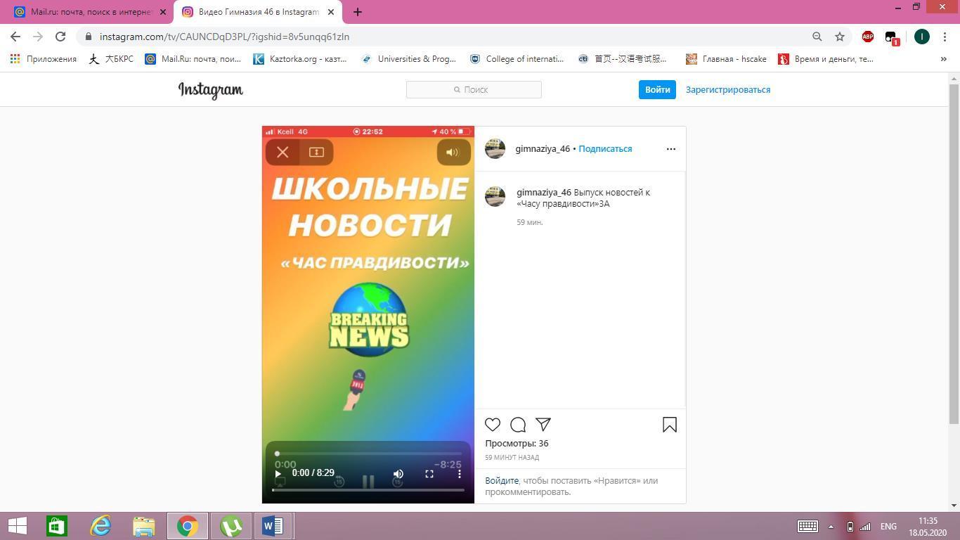 Сегодня, 18 мая проходит Республиканская акция единый урок «Час честности». Учащиеся и родители нашей гимназии активно приняли участие в данной акции. Даже учащиеся начальной школы. Так, классный руководитель 3 «А» класса Васюкова Елена Юрьевна с родителями и учениками подготовили прекрасный ролик «Школьные новости». Думаем, что ЧЕСТНОСТЬ и СПРАВЕДЛИВОСТЬ такие черты, на которых зиждется мир. В нелегкое для всех время ученики, родители, и учителя нашей гимназии не теряют присутствие духа и продолжают творить и активно участвовать во всех акциях!