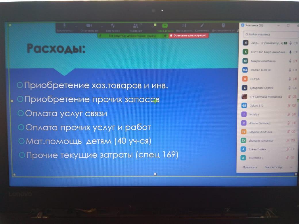Сегодня, 17 октября, в КГУ «Гимназия №46» в рамках реализации Антикоррупционной стратегии РК на 2015-2025 годы была проведена отчётная встреча директора КГУ «Гимназия №46» Суюндиковой А.А. с родительской общественностью в режиме Zoom. Директор гимназии проинформировала родителей о расходовании финансовых средств, выделенных из бюджета на содержание школы в течении первой четверти нового 2020-2021 учебного года, рассказала о проводимой работе в гимназии по воспитанию антикоррупционной культуры, ответила на вопросы родителей. Встреча прошла в доброжелательной обстановке, родители выразили благодарность Суюндиковой А.А. за чёткую информацию, доброжелательность и плодотворное сотрудничество. Также родители выразили благодарность всему педагогическому коллективу гимназии за хорошую организацию дистанционного обучения.