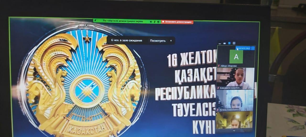 15 желтоқсан 2020 0 1 2 3 4 5 Единый классный час "29-летие Независимости Республики Казахстан" Сегодня, 15 декабря во всех классах был проведён единый классный час, посвящённый 29-летию Независимости Республики Казахстан.