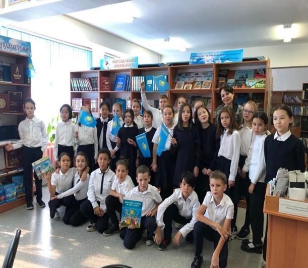 В рамках Республиканского проекта «Читающая школа -читающая нация» в преддверии празднования Дня Республики Казахстан Болатовой Г.А. библиотекарем Гимназии №46 был проведен урок для учащихся 4 «А», 3 «В», 3 «И» классов в стенах школьной библиотеки. Главная цель – приобщение к книге и чтению, к истории родного края; формирование у учащихся казахстанского патриотизма, миролюбия, национального согласия, углубление и расширение знаний и представлений детей о нашей Родине. Гульдария Ансагановна акцентировала внимание учащихся на том, что каждый человек, живущий на планете должен помнить о прошлом своей тсраны, знать настоящее, чтобы построить светлое будущее.