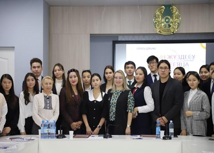 «Алматы дарыны» орталығында 2023 жылының 27 қаңтар айында мектеп парламенттерінің көшбасшыларының, пікірталас қозғалысының, шығармашылық конкурстарының жеңімпаздарының жарқын табысты адамдарымен-Ажигулова Халида Қанатбекқызы, Ержанов Ерасыл Асхатұлымен «Жарқын жүздесу» кездесуі өтті.Кездесуді №46 гимназиясының оқушысы Камышева Юлия жүргізді.Кездесудің мақсаты-жарқын табысты адамдармен танысу,жастардың азаматтық, патриоттық, мәдени тәрбиесіне оң мысалмен ықпал ету, жалпы адамзаттық құндылықтарды дамыту, жаңа демократиялық қоғамда өмір сүруге қабілетті азаматты қалыптастыру.