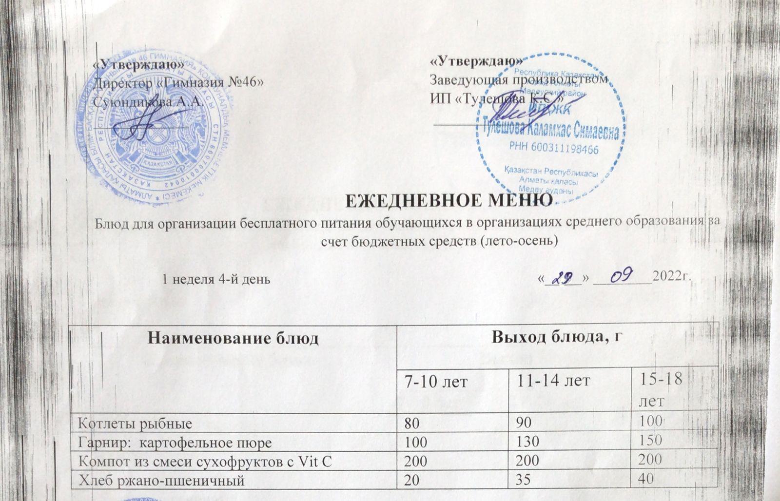 » Ас мәзірі 29.09.2022ж. Меню на 29.09.2022г.
