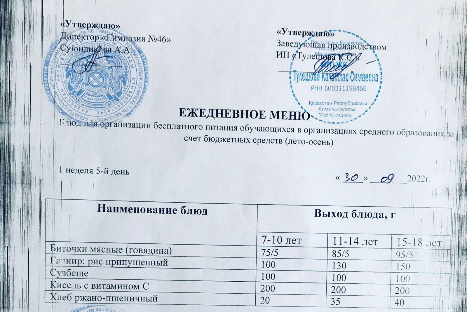 » Ас мәзірі 30.09.2022ж. Меню на 30.09.2022г.