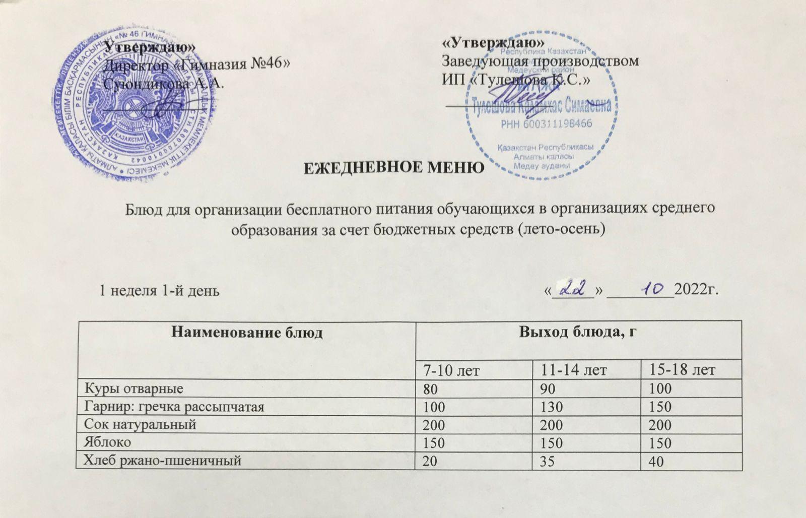 » Ас мәзірі 22.10.2022ж. Меню на 22.10.2022г.