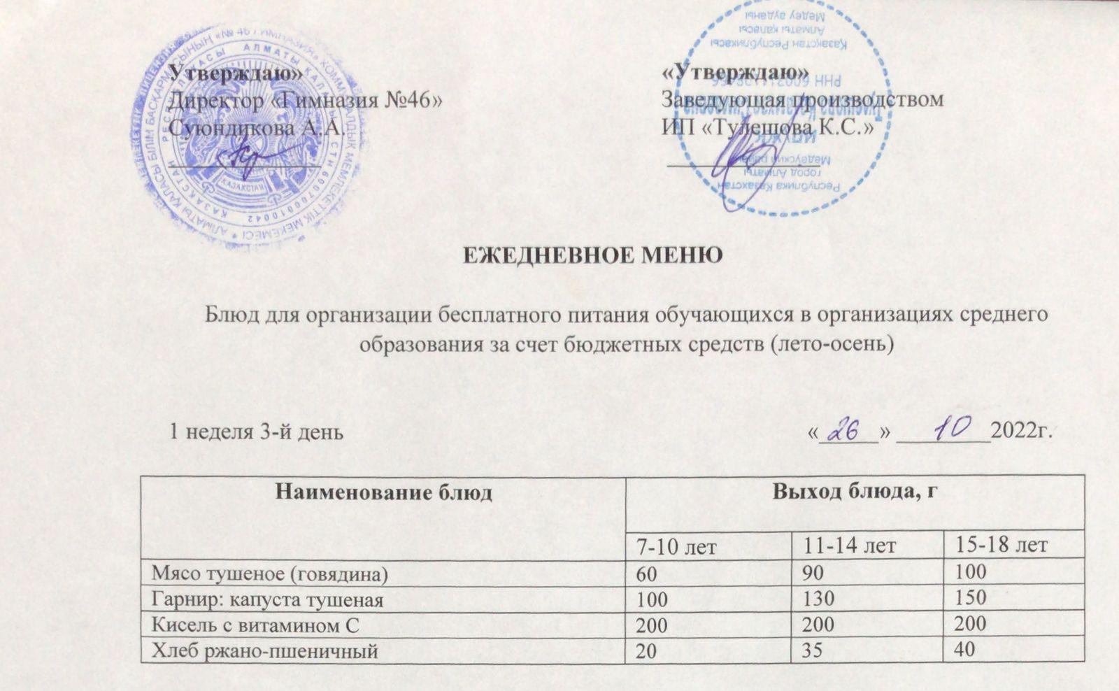 » Ас мәзірі 26.10.2022ж. Меню на 26.10.2022г.