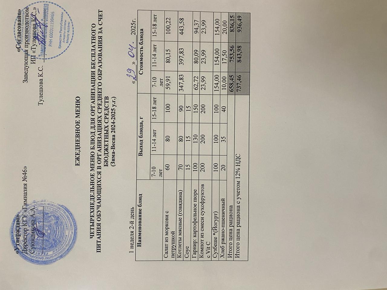 Ас мәзір 28.04.2025 ж. Меню 28.04.2025 г.