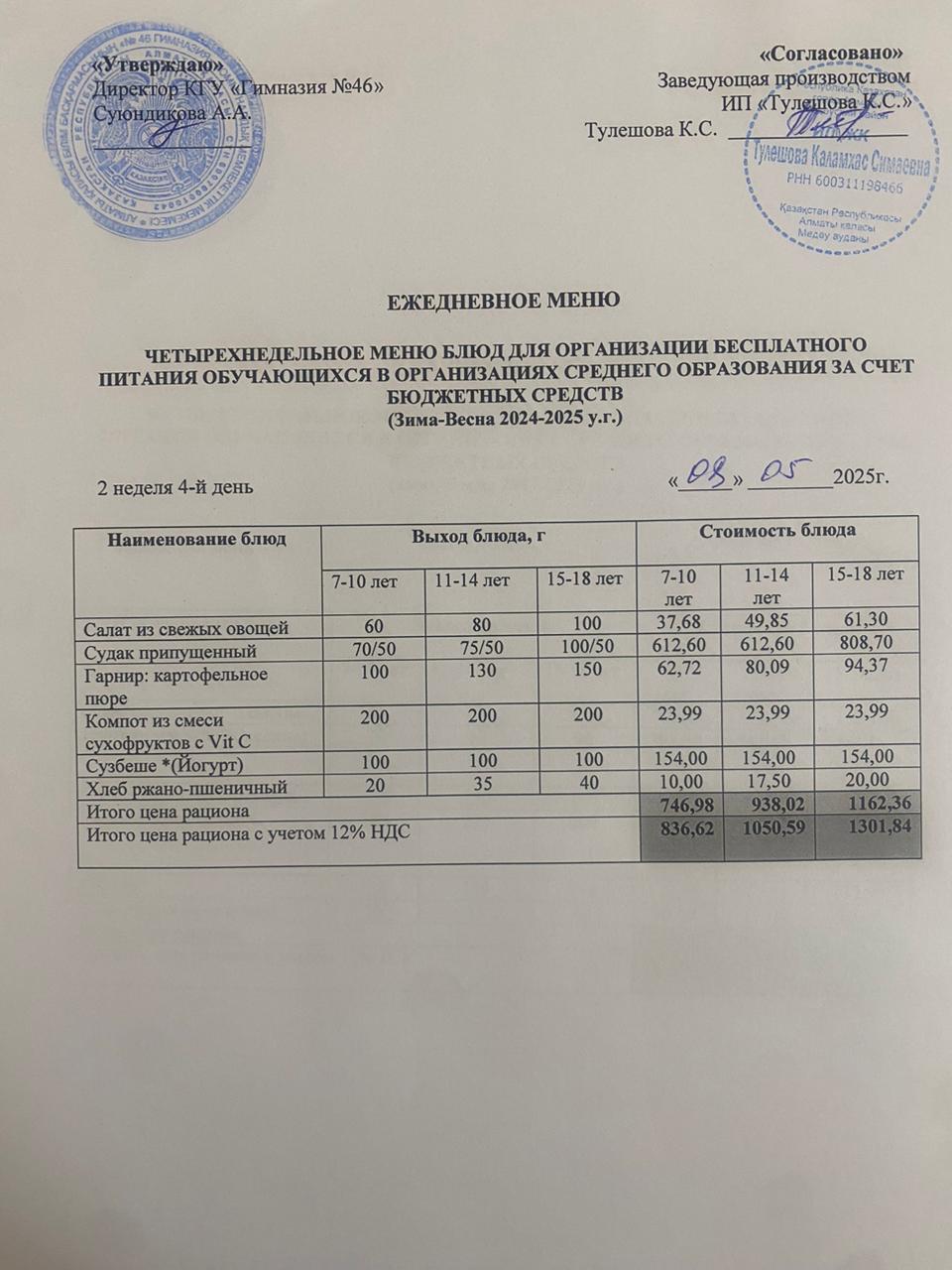 Ас мәзір 05.05.2025 ж. Меню 05.05.2025 г.